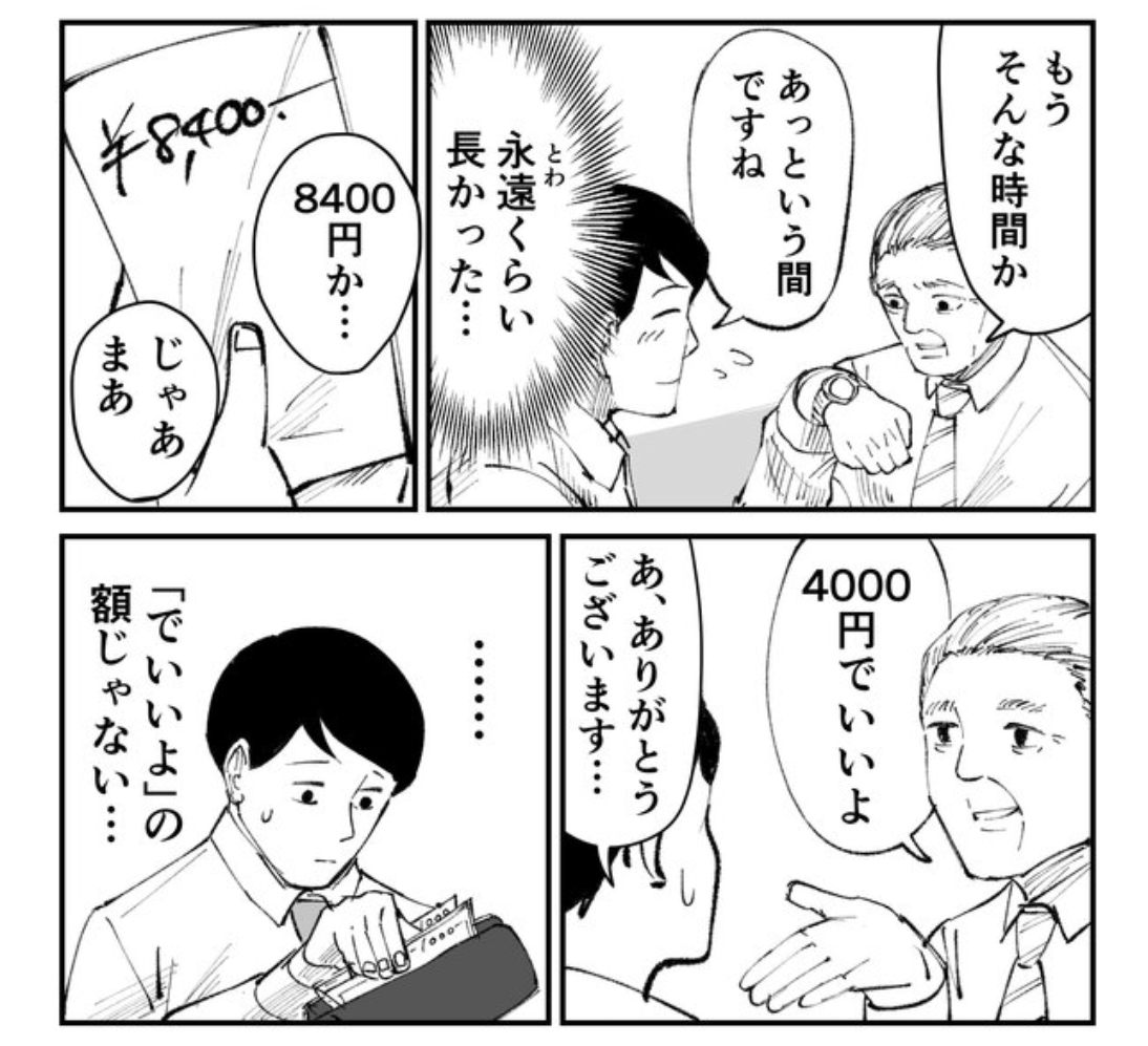 部下は話に付き合ってあげてるんだから、数百円なんてケチ臭いことしてないでちゃんと出さきゃだあかん