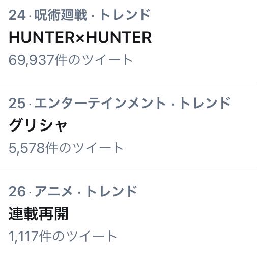 ハンターがトレンド入り