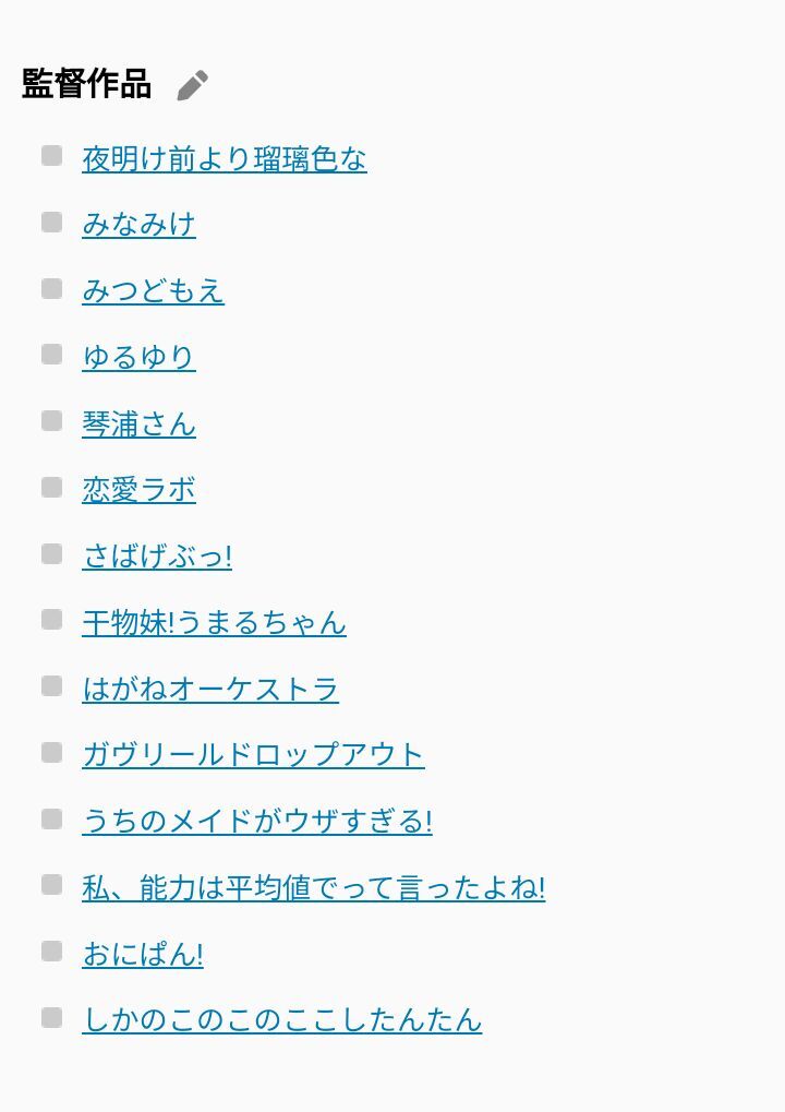 今現在関わってるとされるアニメでこんな感じだな