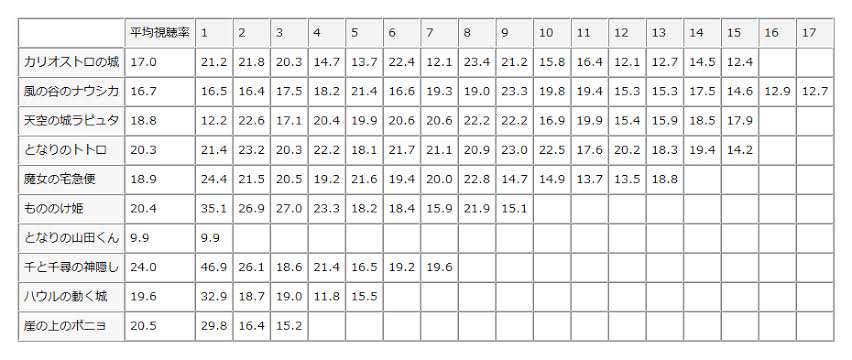 千と千尋の初回視聴率凄いな…