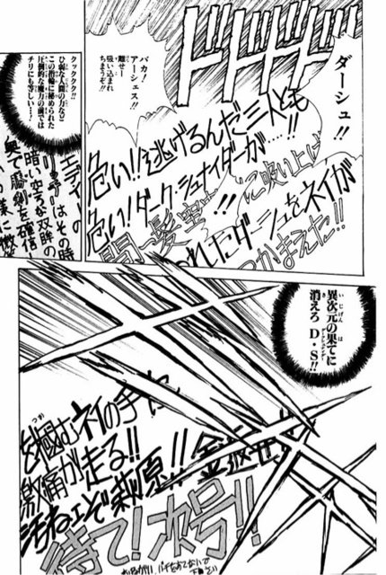 ハンタで例えるならゴンさんが登場した場面が「筋骨隆々なマッチョボディーに変化したゴンが長い髪を棚引かせてピトーを蹴り飛ばしたァーーーー」とか白いコマに字だけで書きなぐられてる感じというか