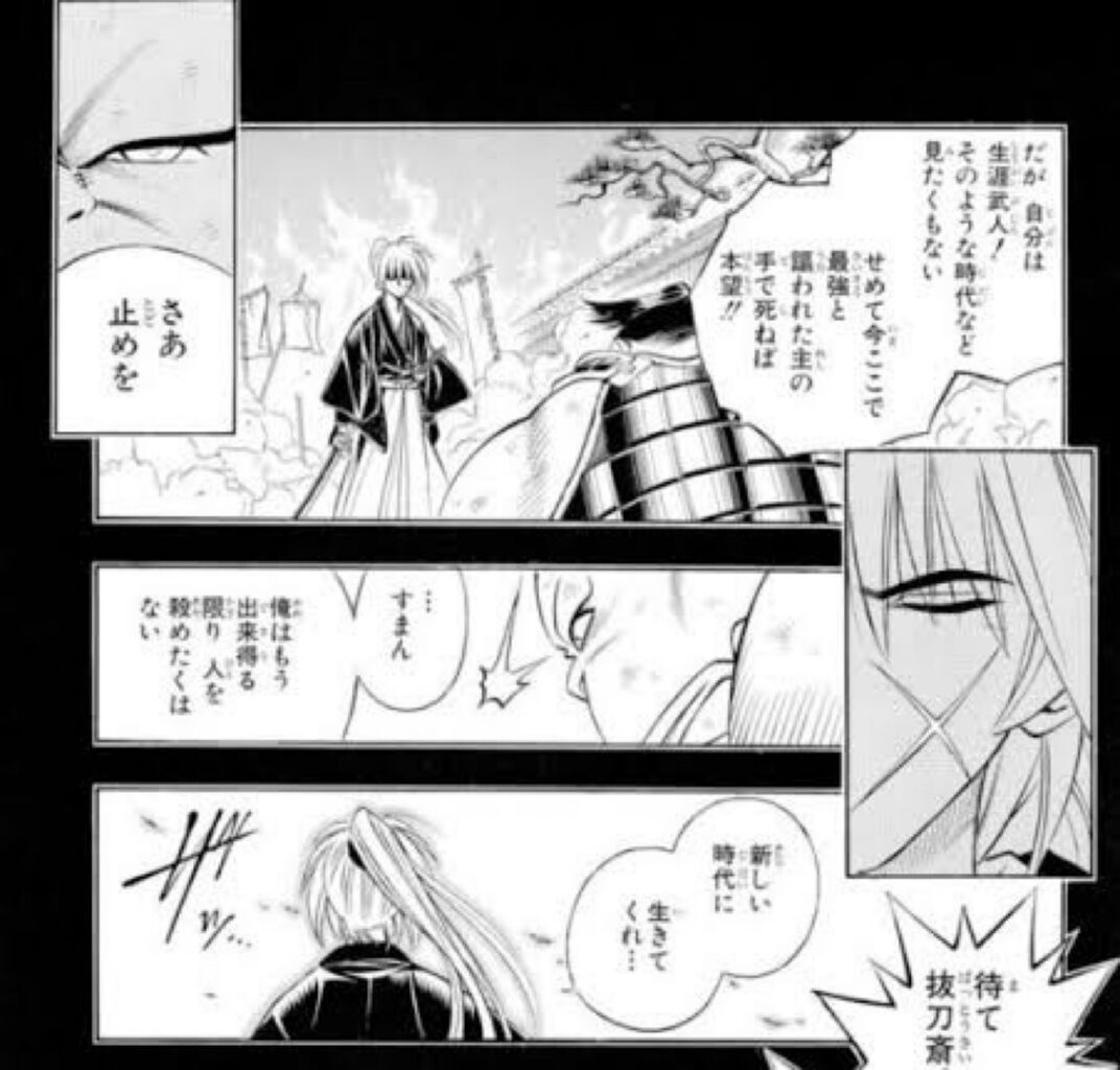 剣心の場合は目の前での他の人間による殺人は可能な限り止めはするがまぁそれができなくても不殺の誓いを破ったことにはならないしな