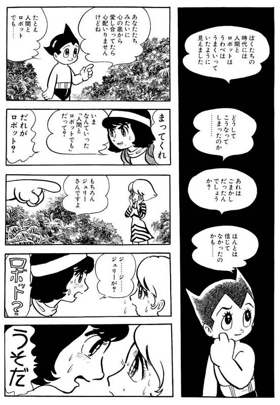 他のロボ漫画は「ロボで良いじゃねぇか」って感じで割と肯定的なのにアトムは妙に湿っぽい