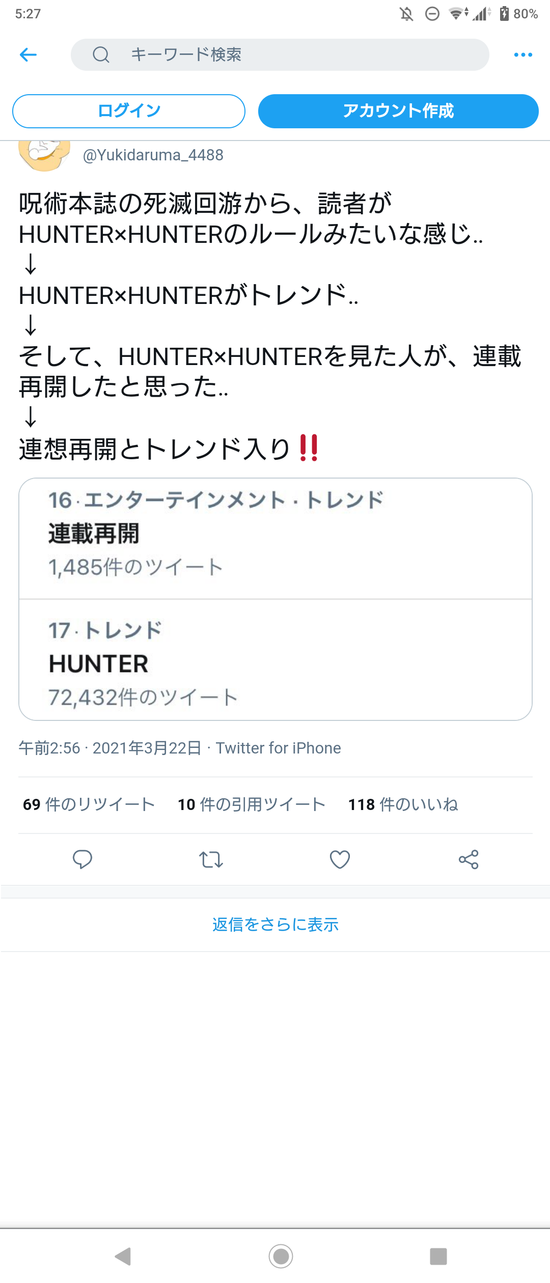 連載再開がトレンド入り